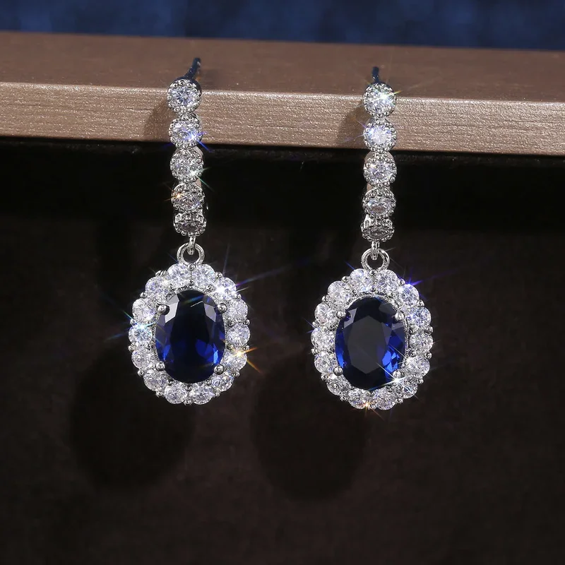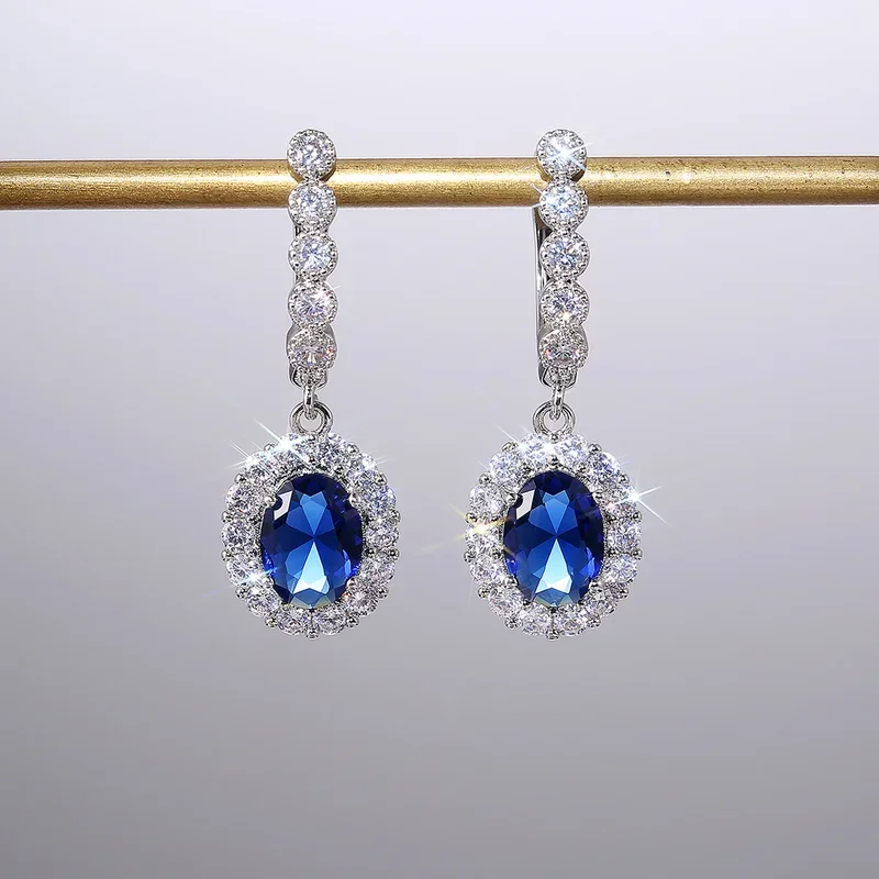 2025 Elegant Women Drop Earrings – Silver Color Inlaid Blue & White Zirconia Classic Wedding Party Jewelry