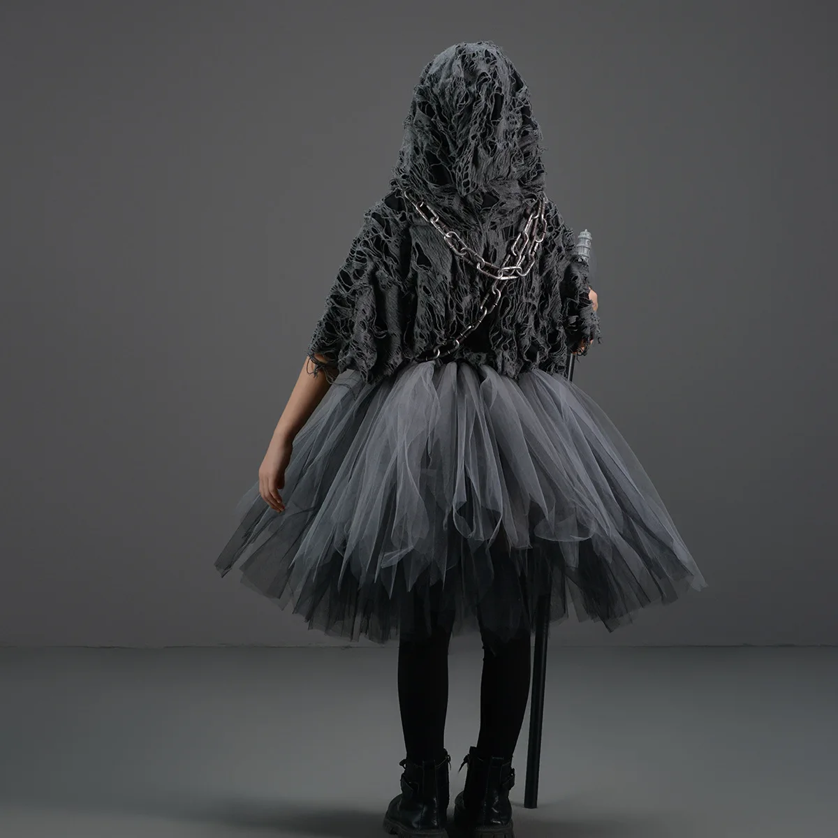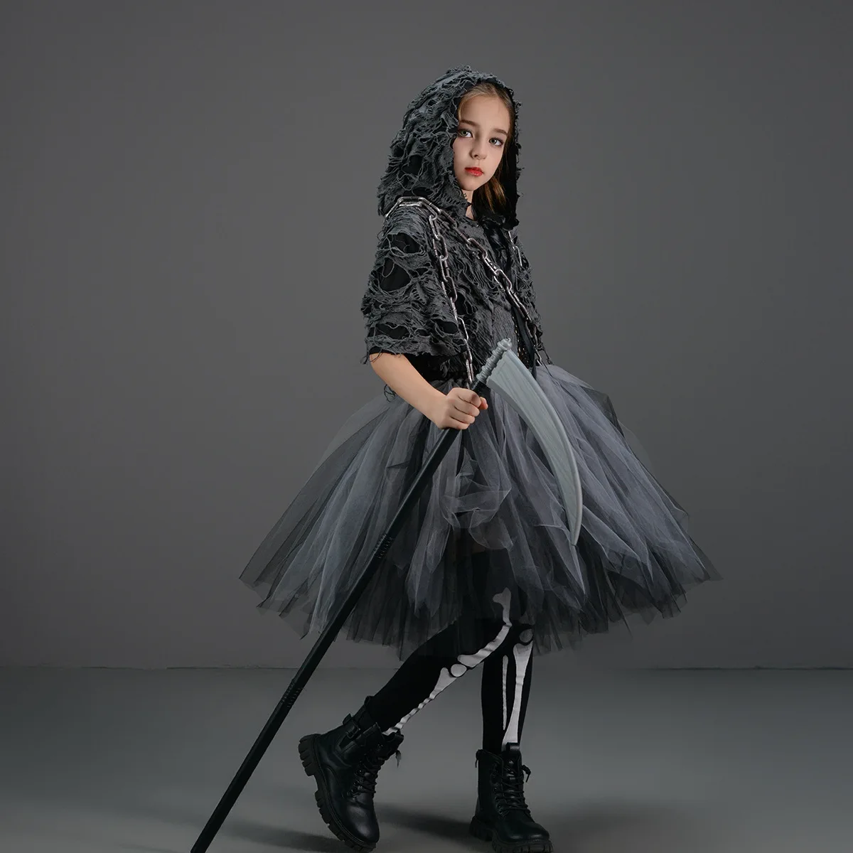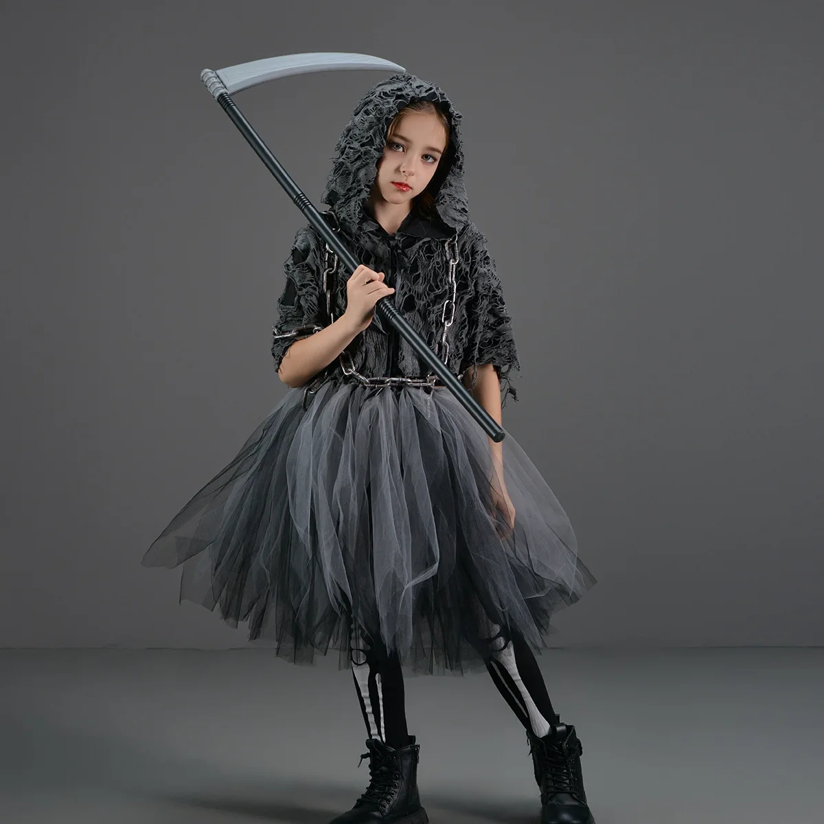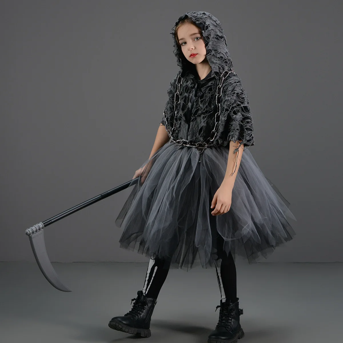 2025 Halloween Girls Demon & Death Costume – Medieval Hooded Cloak for Horror Cosplay and Party Fancy DressHalloween, Girls Costume, Demon Costume, Death Costume, Horror Costume