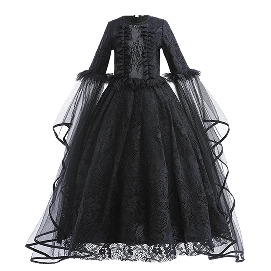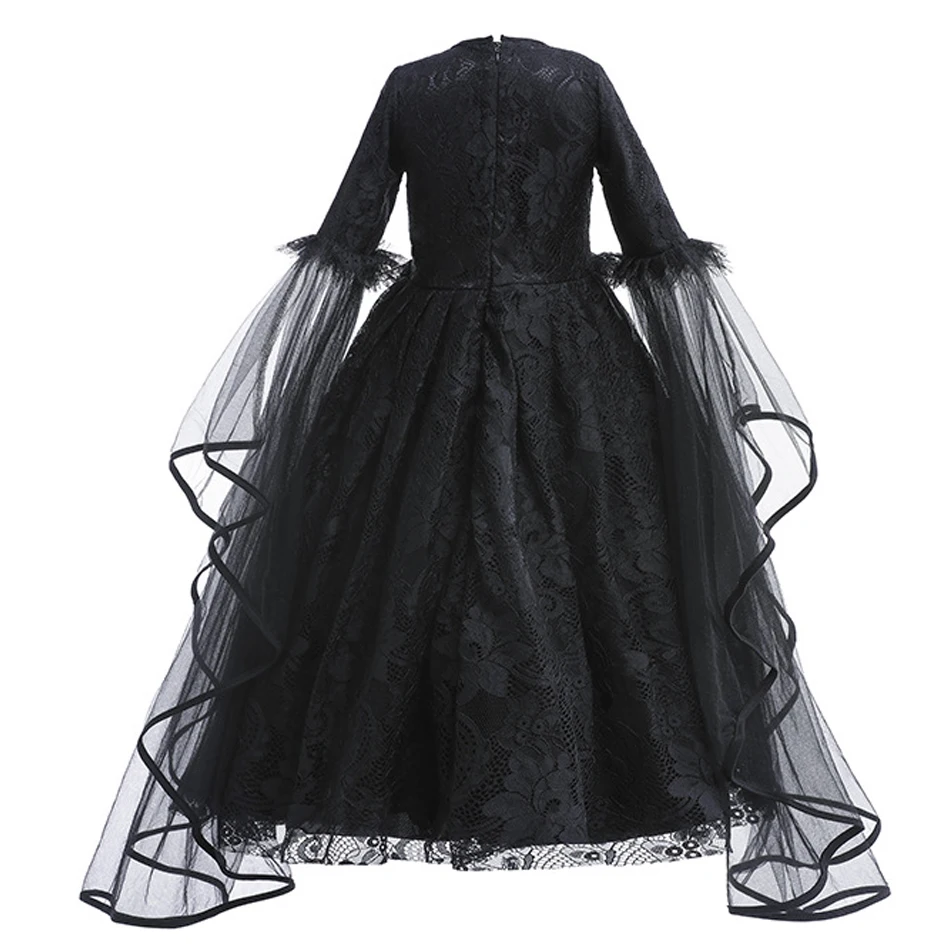 2025 Halloween Kids Evil Witch Costume – Maleficent-Inspired Black Tulle Dress for Fantasy Party & Cosplay