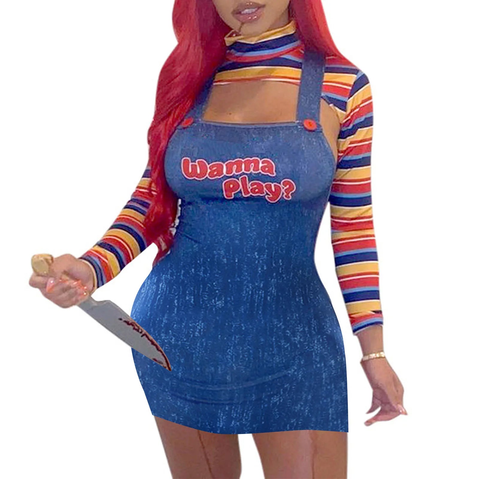 2025 Halloween Women’s Costume – Scary Chucky Doll Bodysuit from Child’s Play Movie Character Set