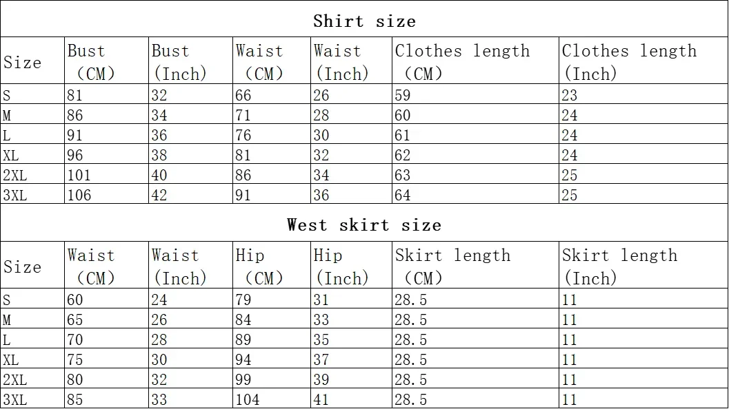 Costume comprend: haut + jupe + gants