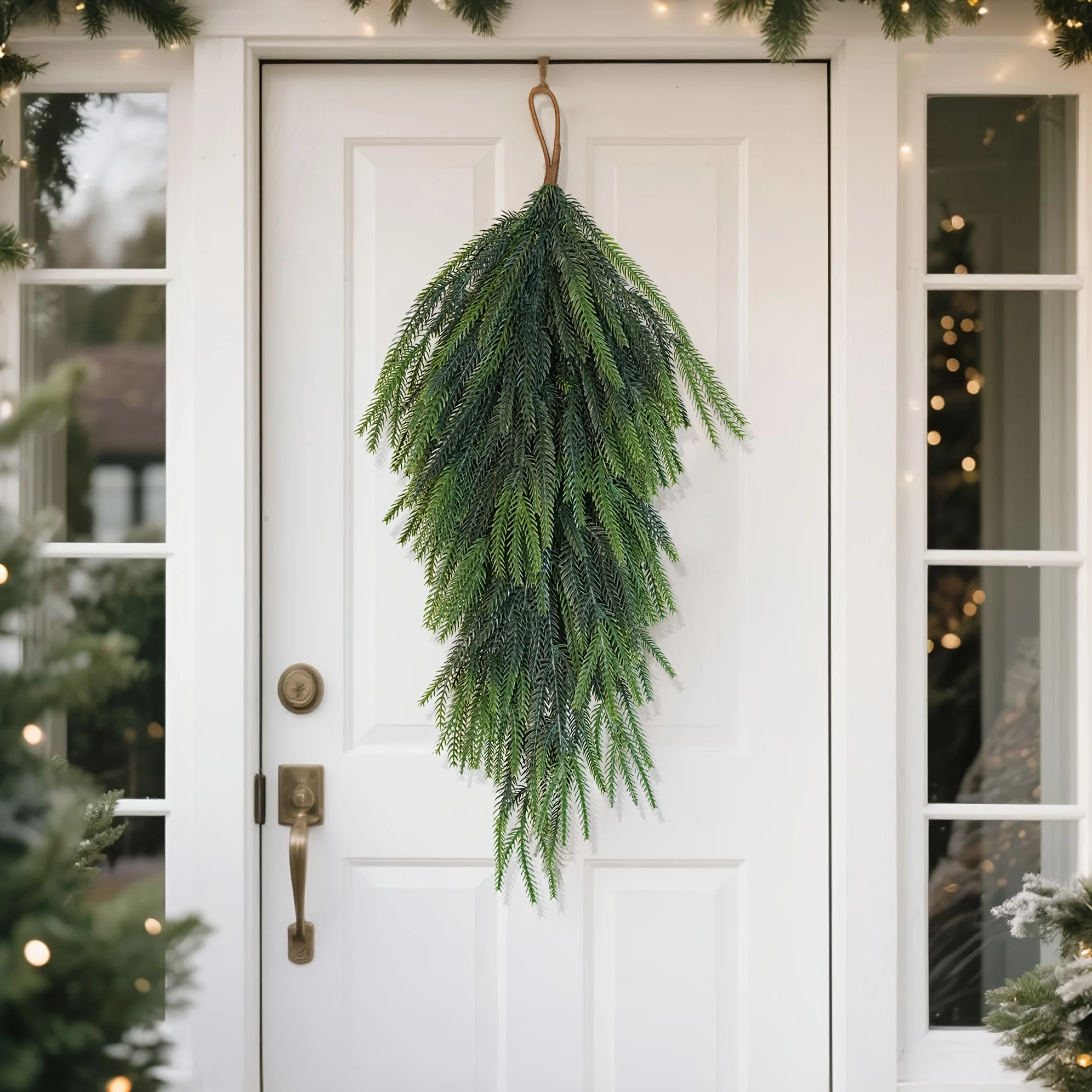 Artificial Pine Needle Teardrop Wreath – Norfolk Green Door Decor for Outdoor Christmas Decoration