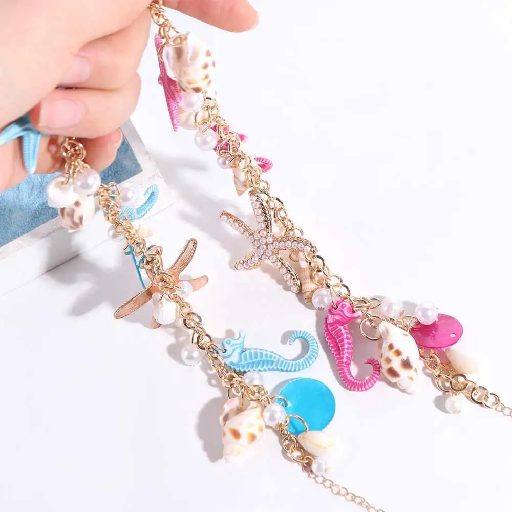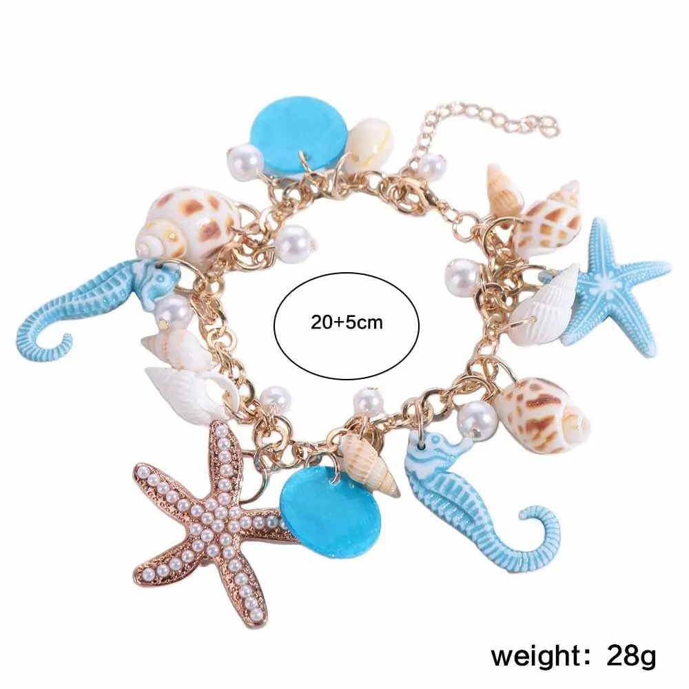 Bohemian Sea Shell & Starfish Bracelet – Imitation Pearl Beaded Adjustable Beach Jewelry for Women