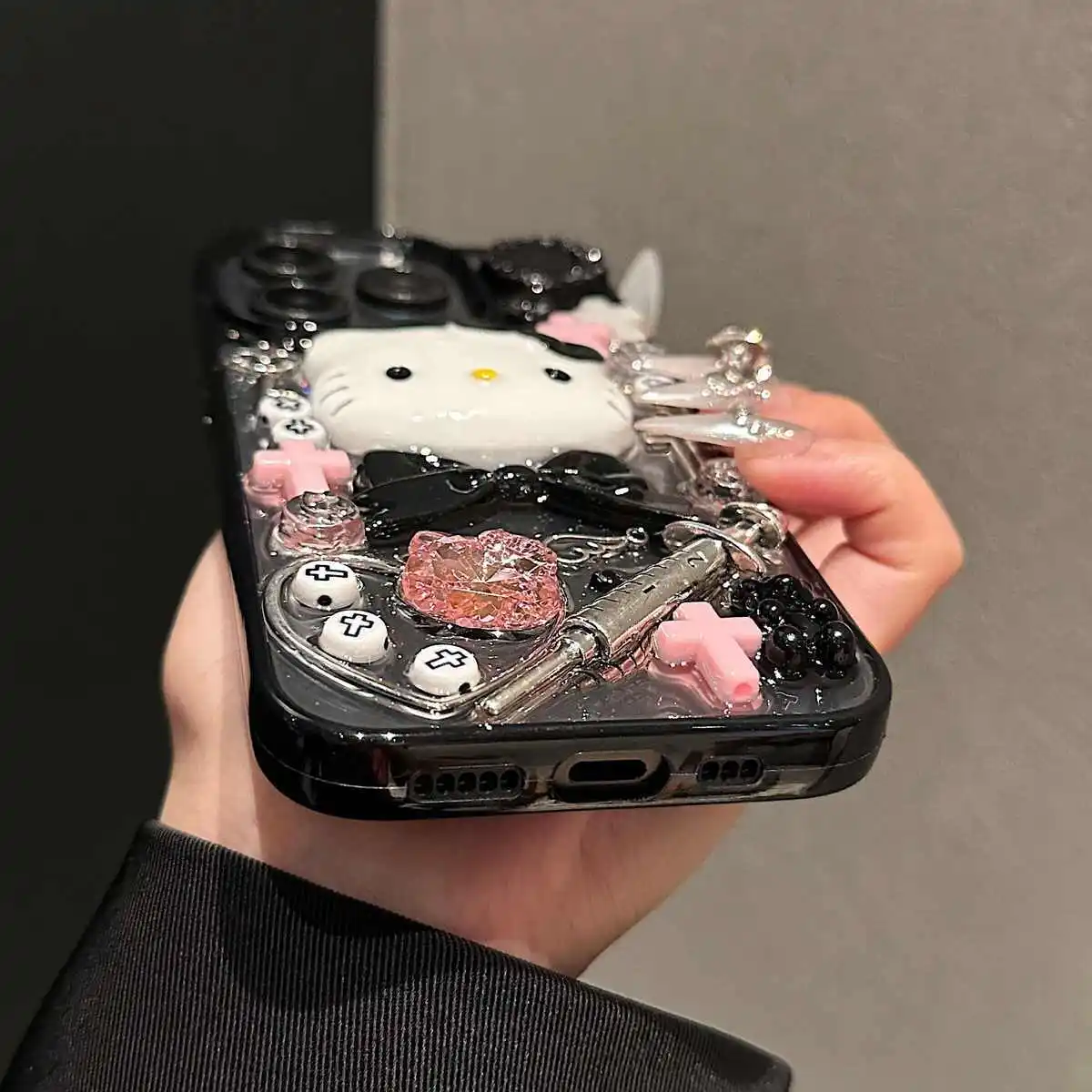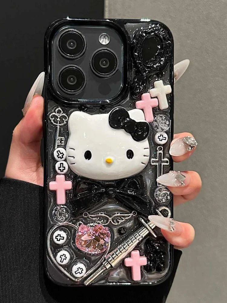 Kawaii Hello Kitty Cartoon DIY Phone Case Suitable for IPhone 15 14 13 11 16ProMax Y2k Cool Girl Anti Drop Transparent Case 2025