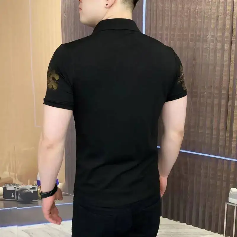 Luxury Rhinestone Printed Short Sleeve T-Shirt for Men