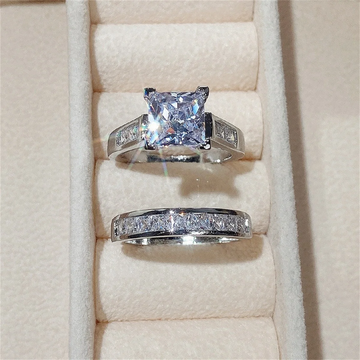 Luxury Wedding Ring Set for Women – Dazzling Square Zirconia Rhinestone Bridal Jewelry & Elegant Accessories