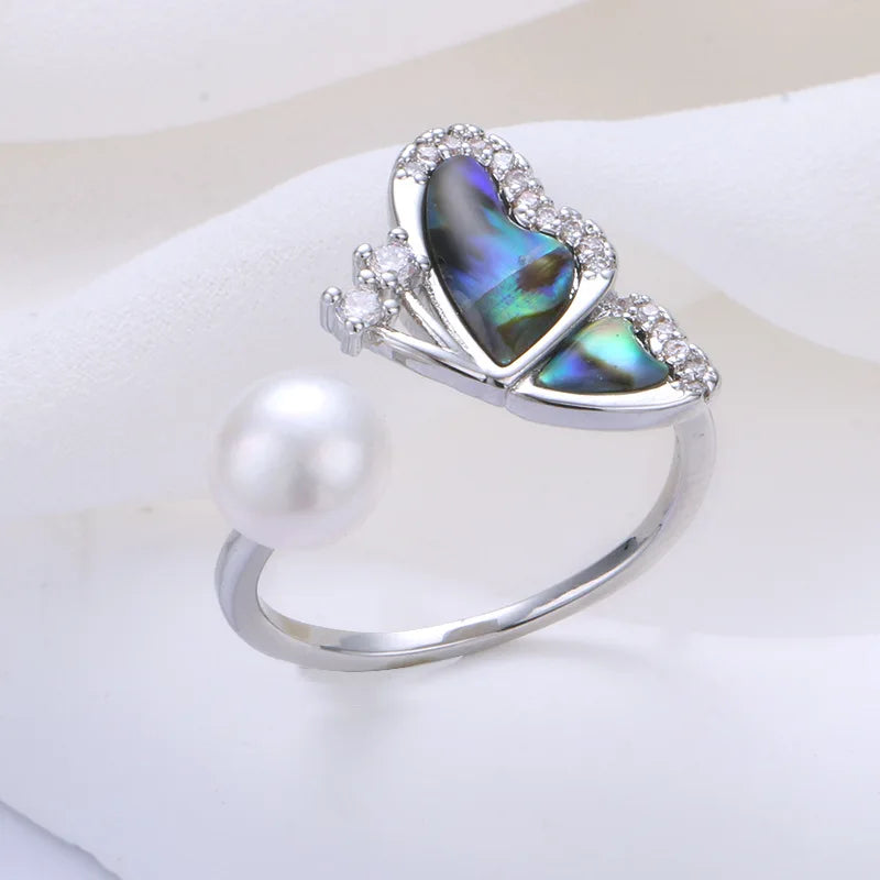 Natural Freshwater Pearl & Abalone Shell Butterfly Jewelry Set – Necklace, Earrings & Ring for Wedding and Fine Fashion