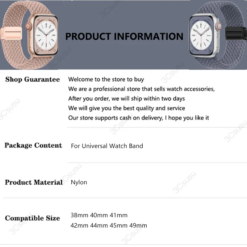 Nylon Braided Magnetic Strap for Apple Watch – Compatible with 40mm, 41mm, 44mm, 45mm, 49mm (Series SE, 3, 5–9, Ultra2)