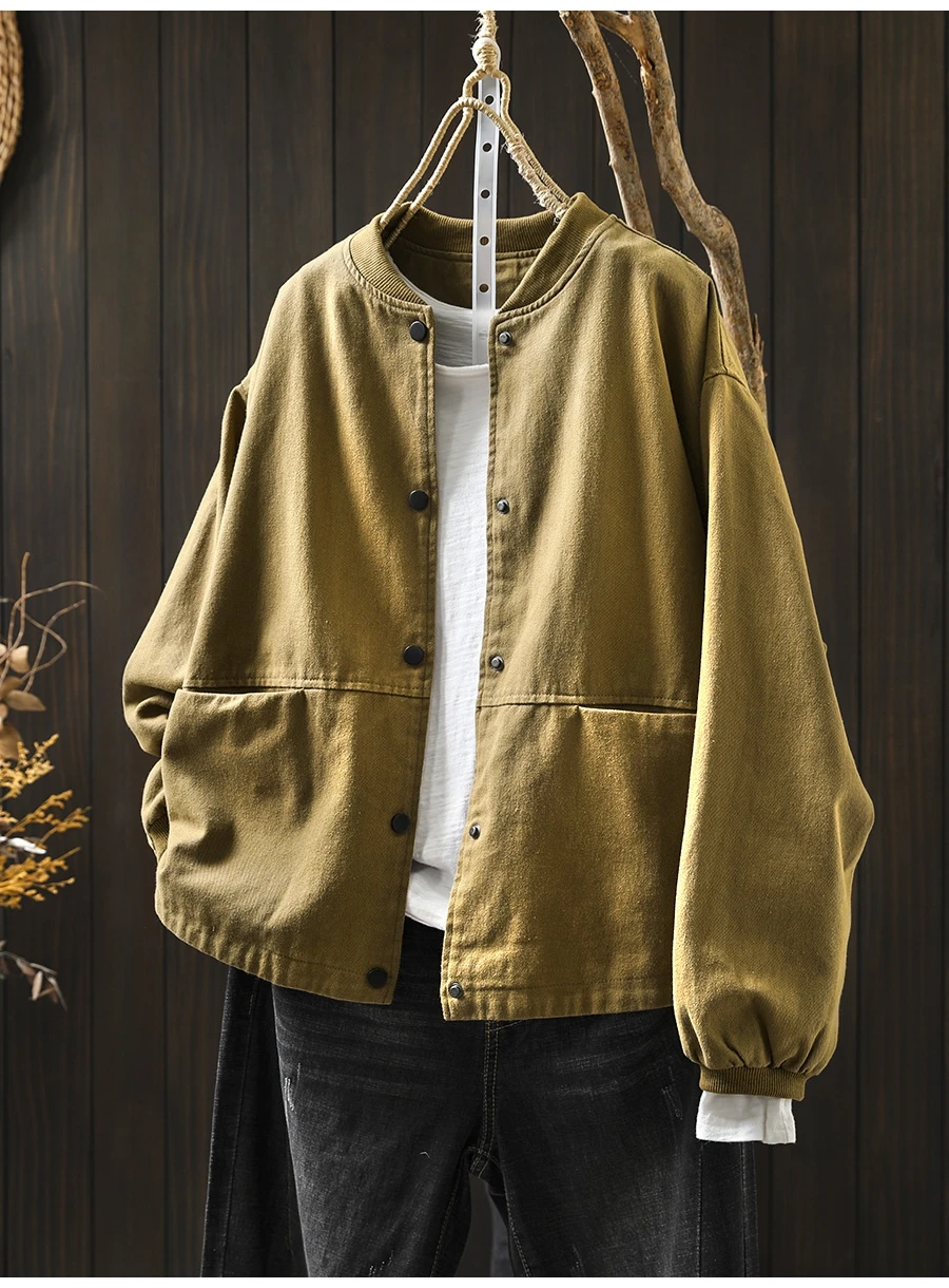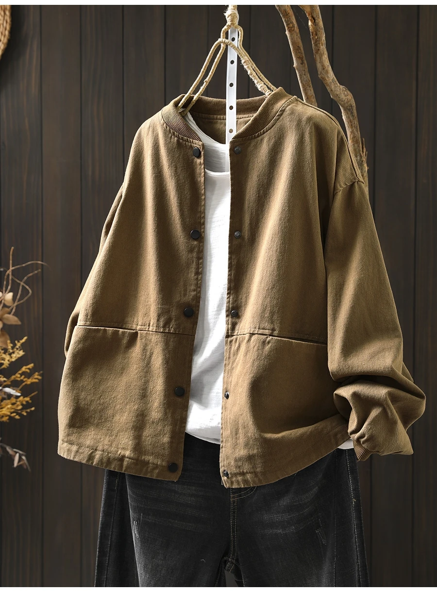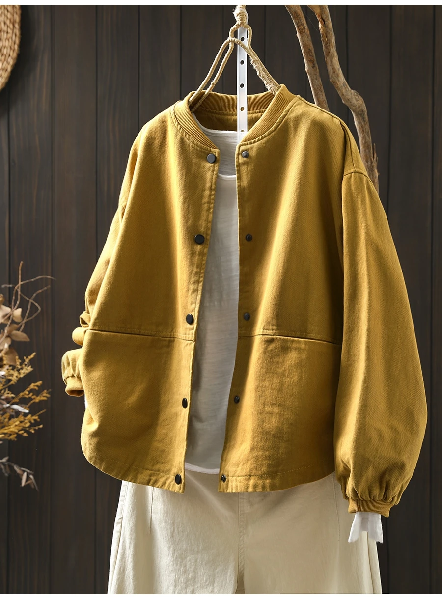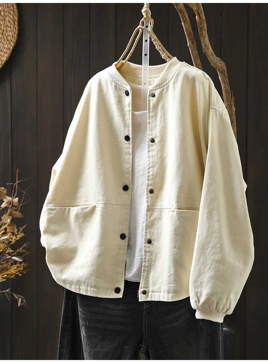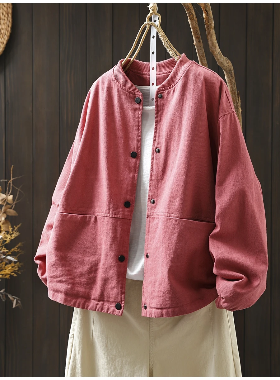 Women’s Casual Cotton Coat – 2025 Autumn Solid Color Loose Short Jacket with Double Pockets | Simple Everyday Style (T647)