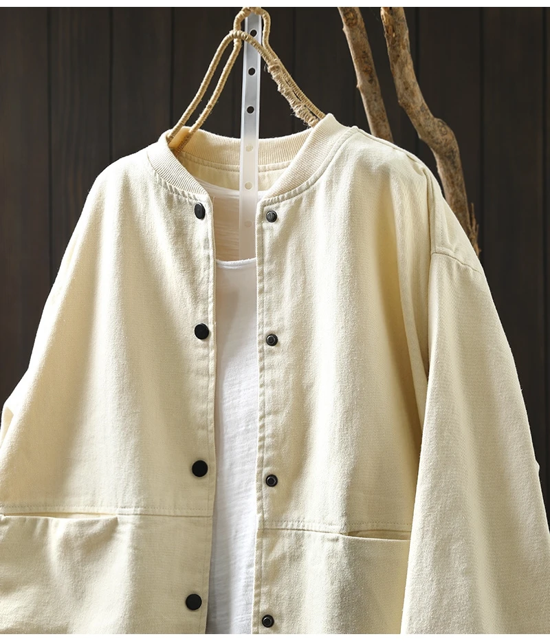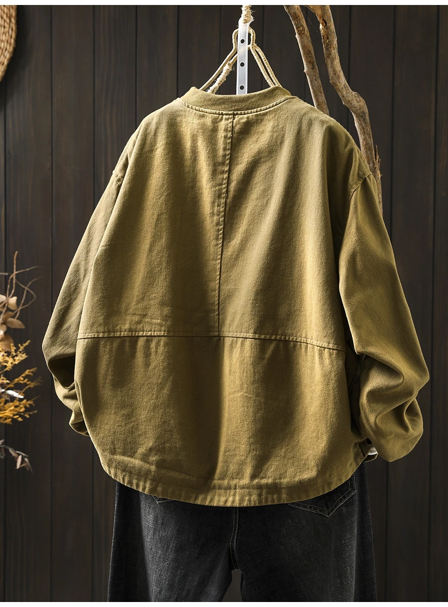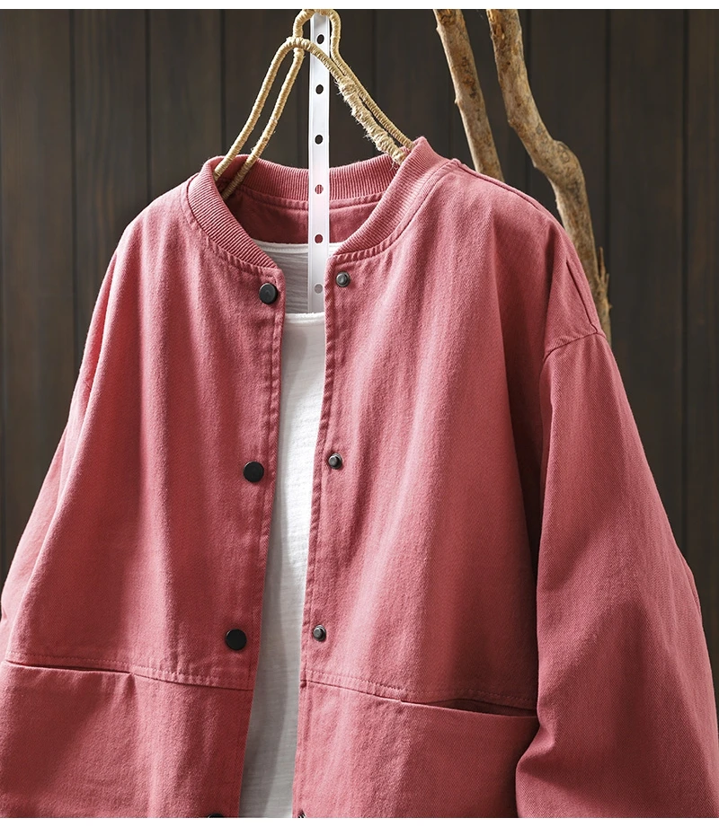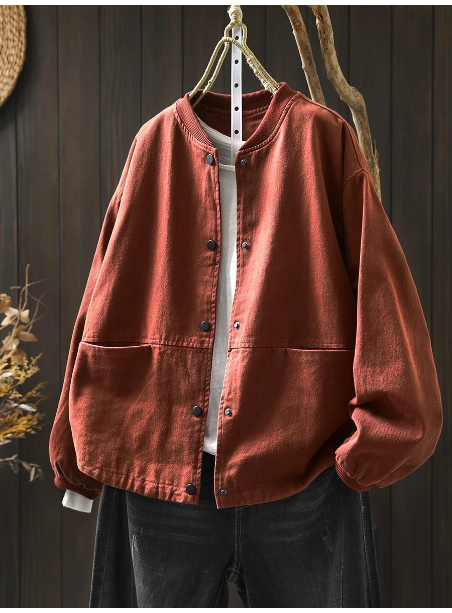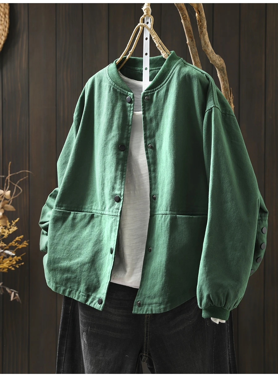 Women’s Casual Cotton Coat – 2025 Autumn Solid Color Loose Short Jacket with Double Pockets | Simple Everyday Style (T647)