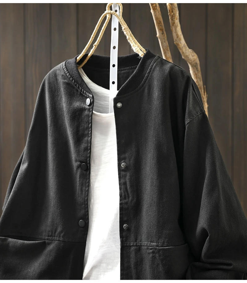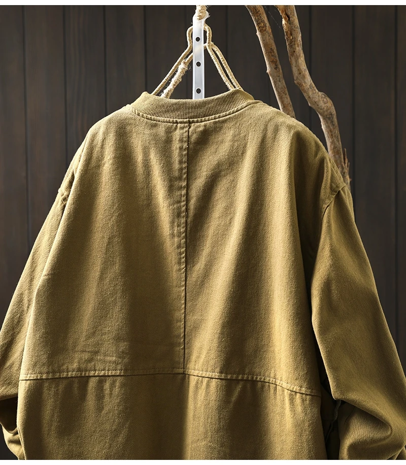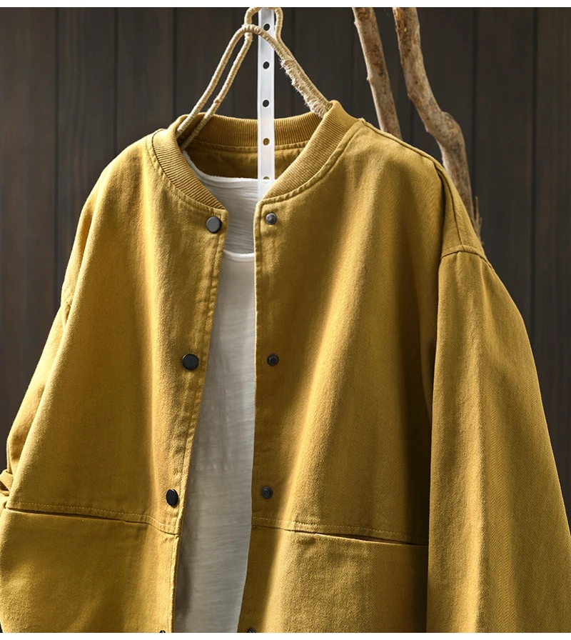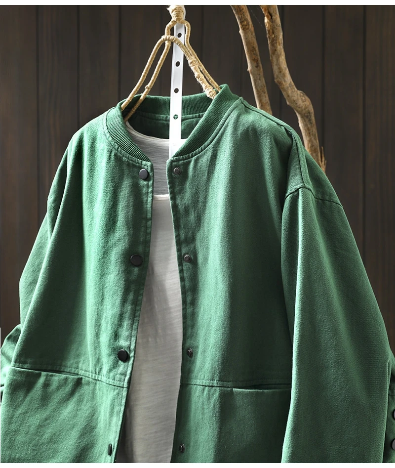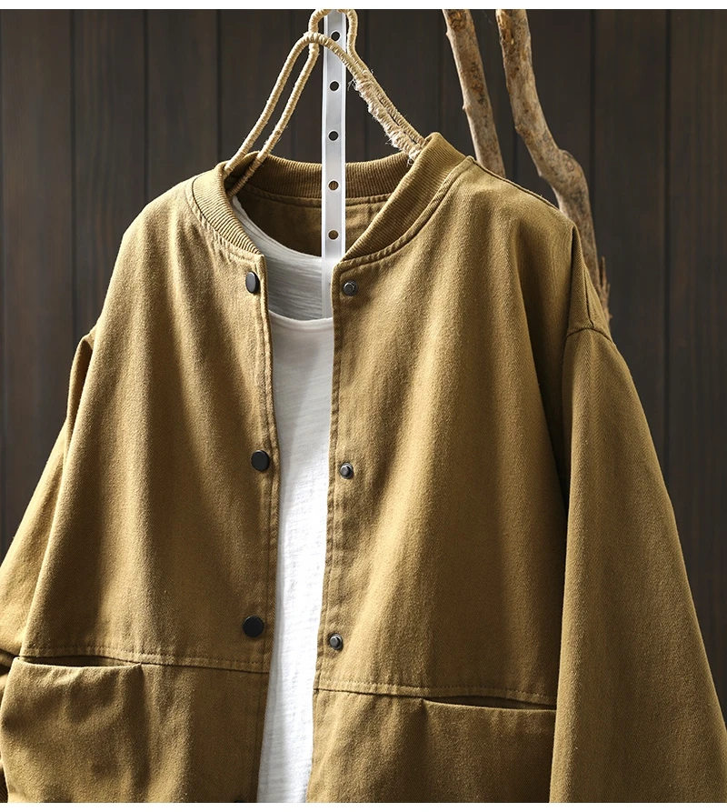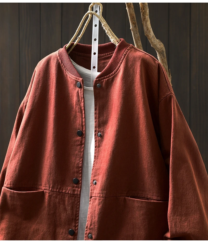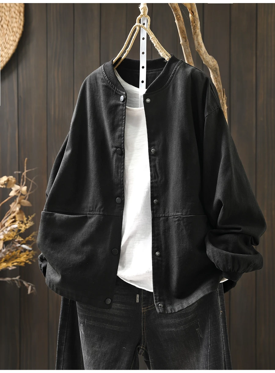 Women’s Casual Cotton Coat – 2025 Autumn Solid Color Loose Short Jacket with Double Pockets | Simple Everyday Style (T647)