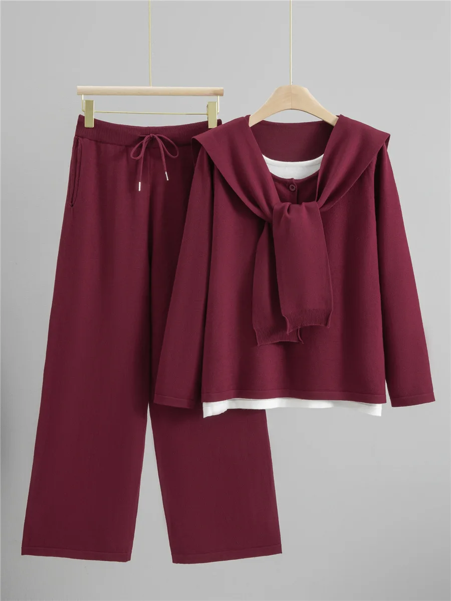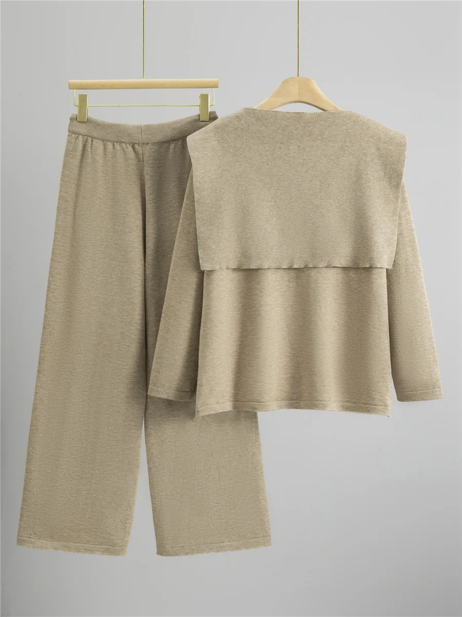 Women’s Casual Knitted 2-Piece Set – Korean Knitwear Sweater + Shawl + High Waist Pants | 2025 Fashion Outfit