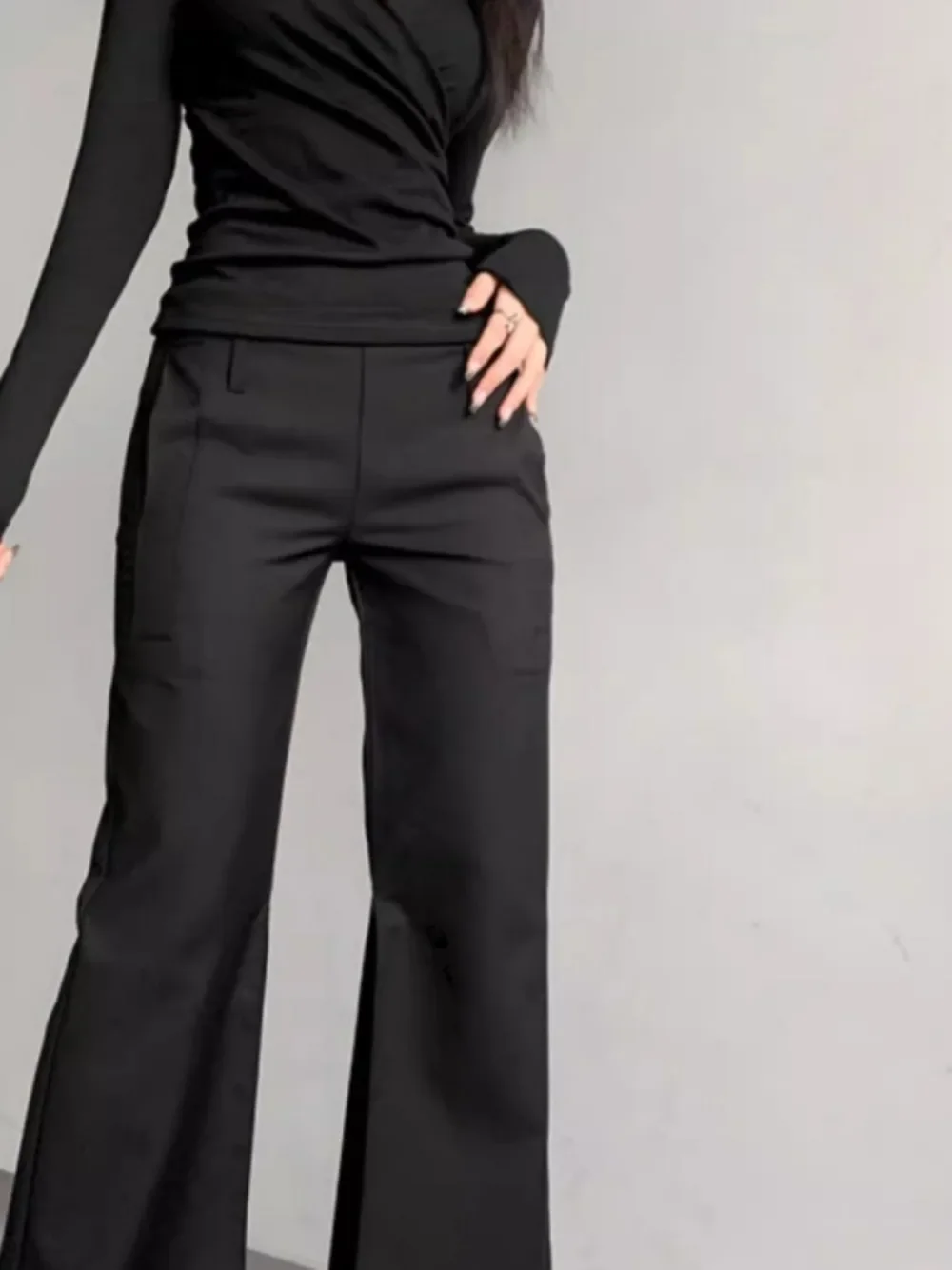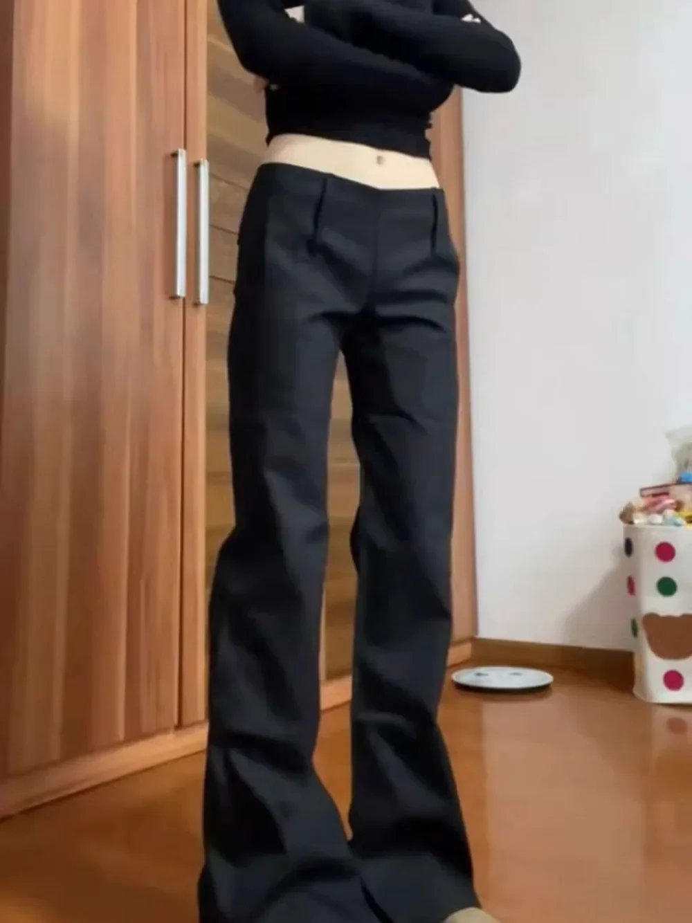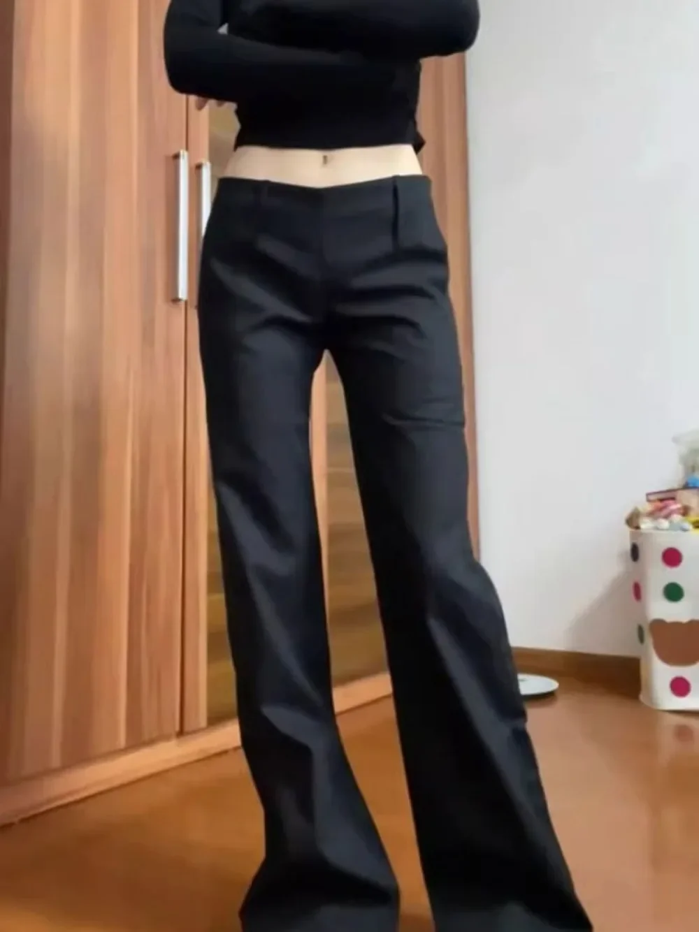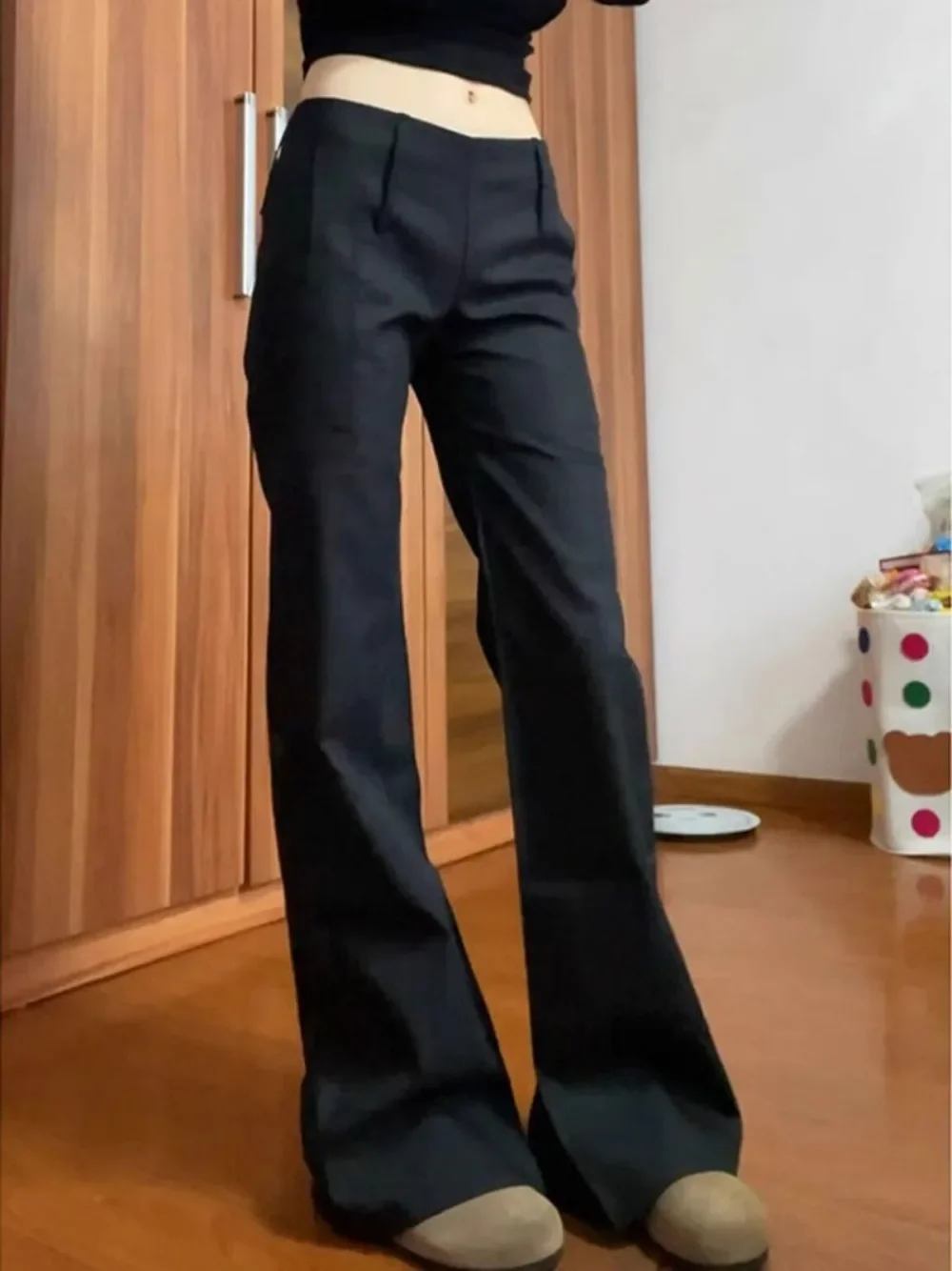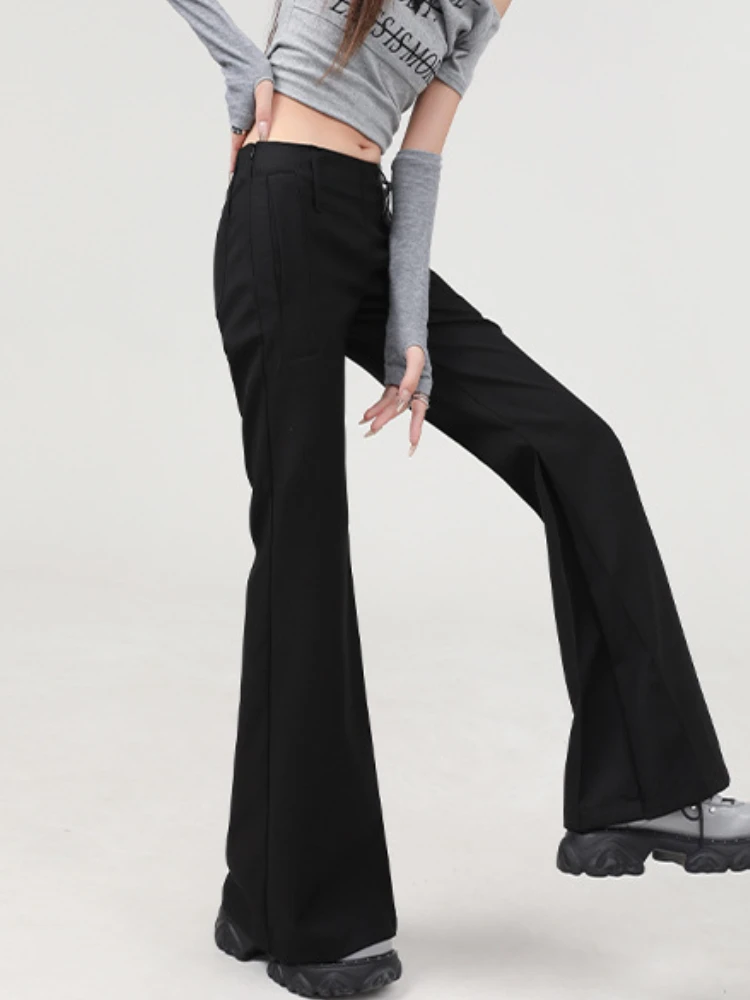 Women’s High-Waist Flare Pants – Solid Color Full-Length American Style Trousers | Straight-Leg All-Match Trendy Look