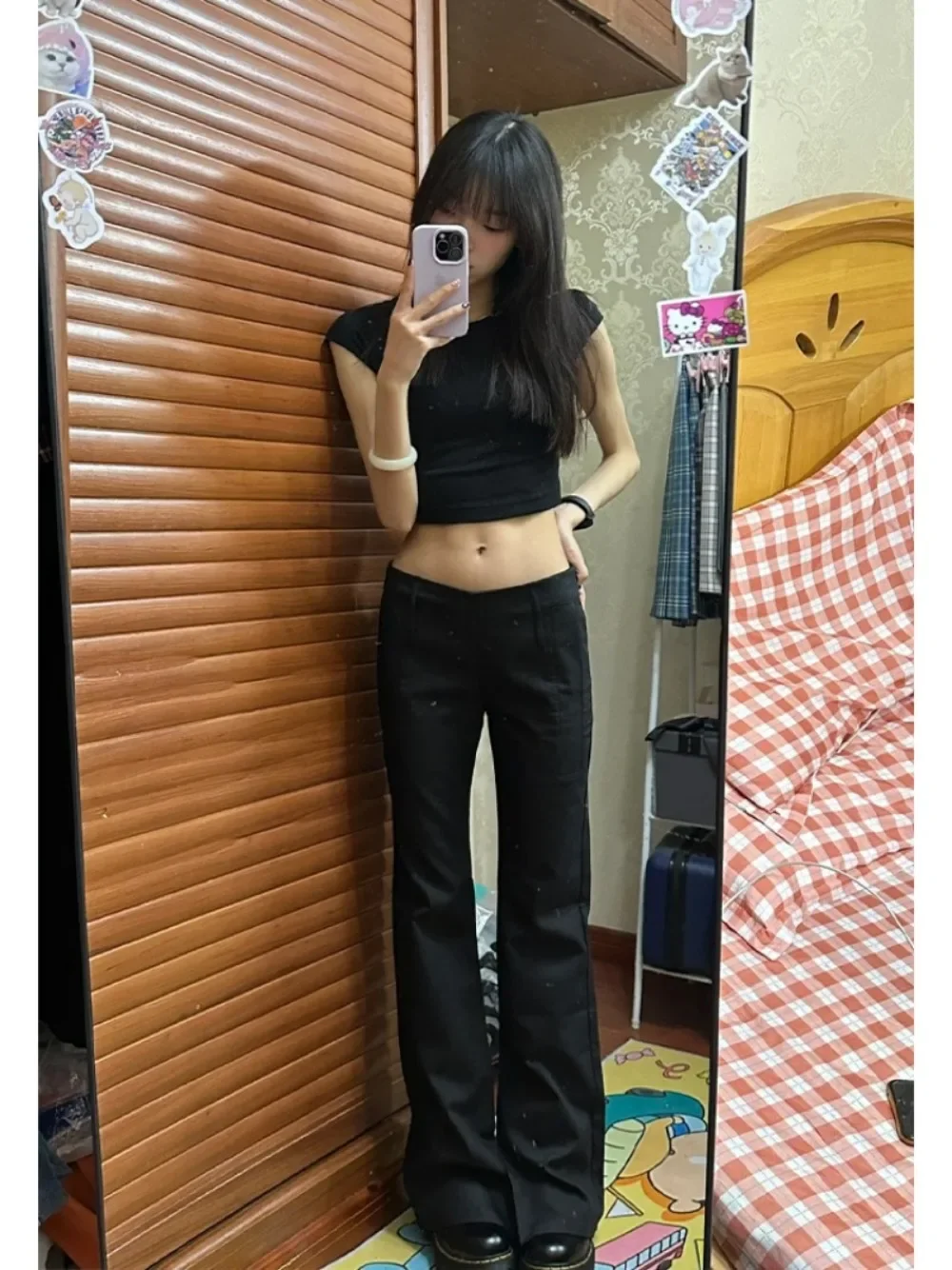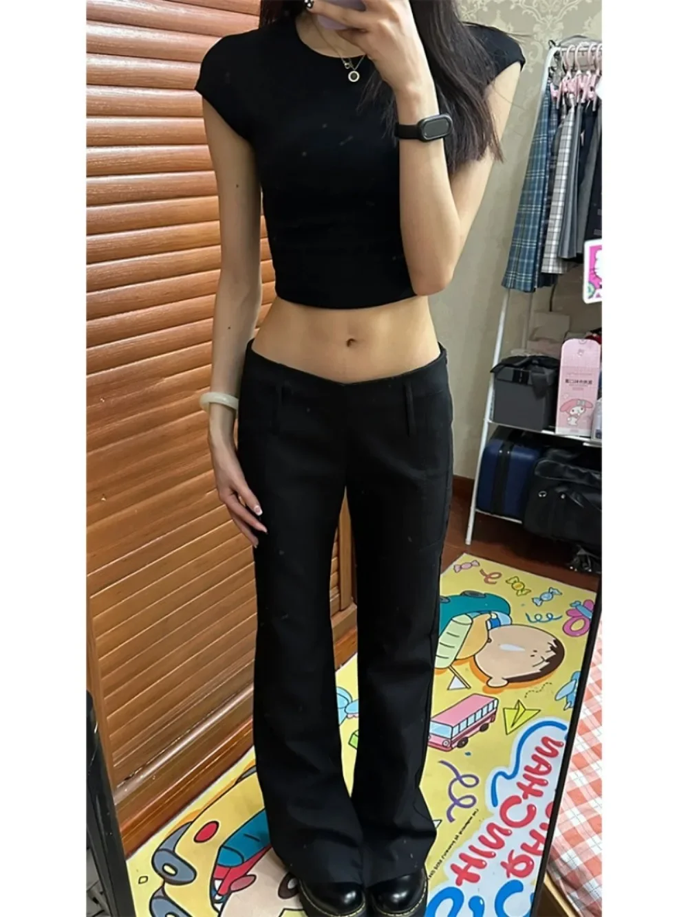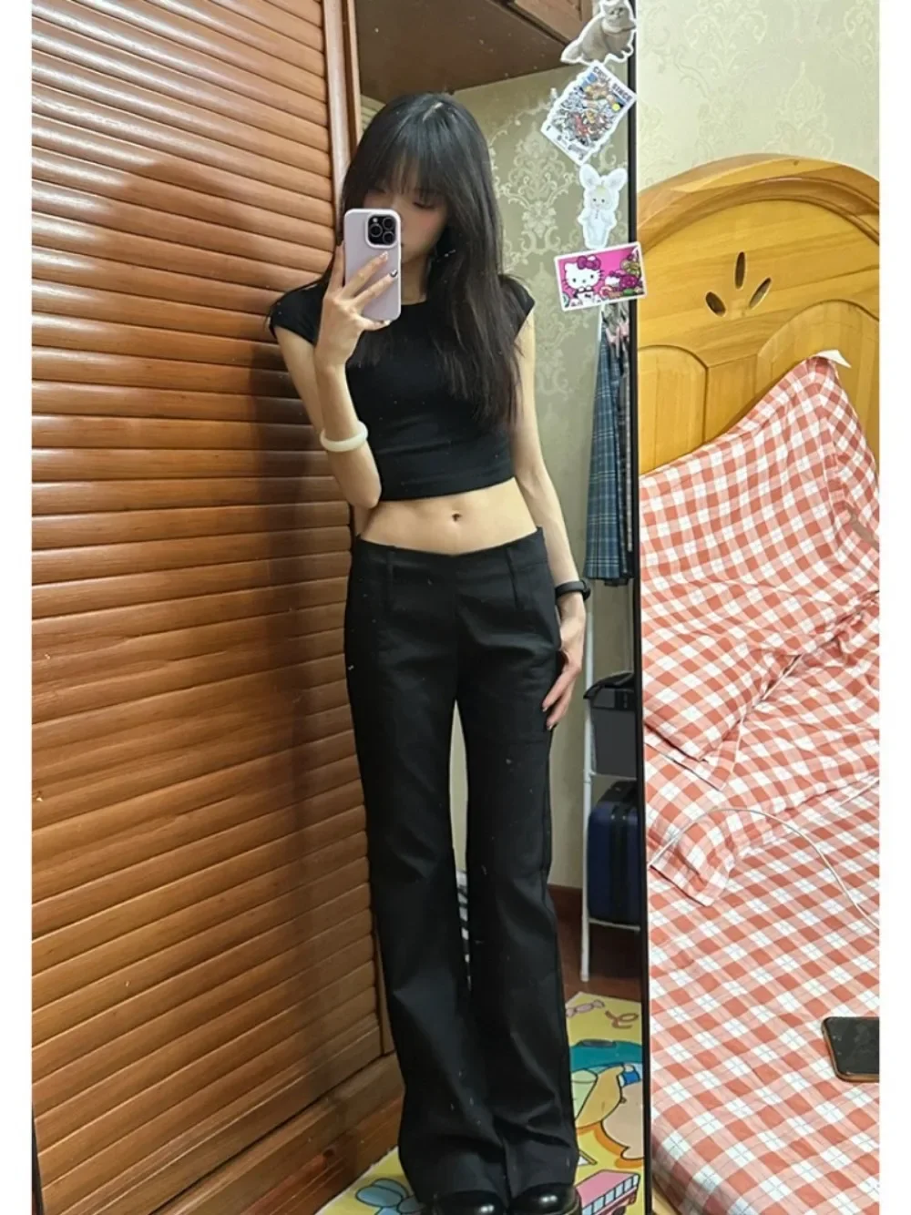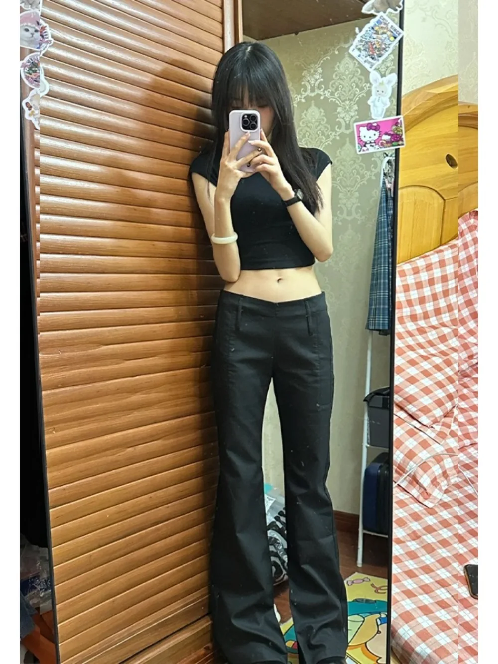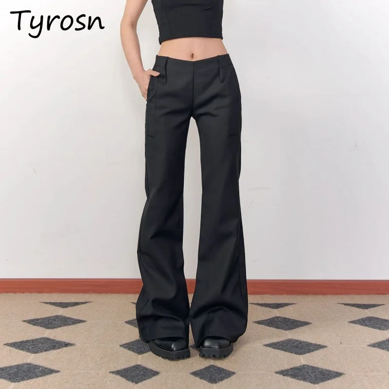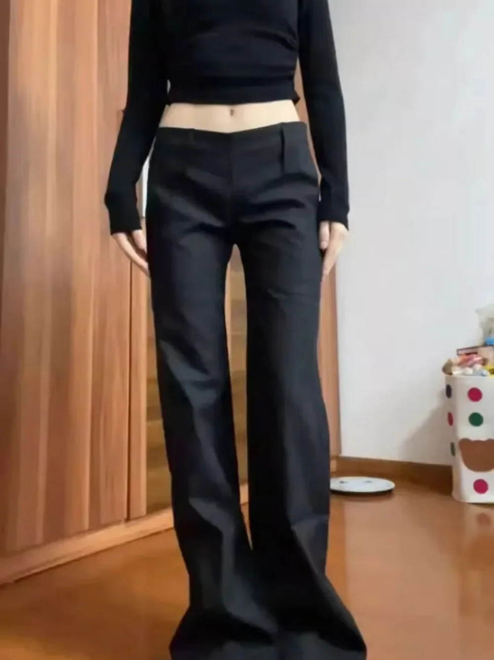 Women’s High-Waist Flare Pants – Solid Color Full-Length American Style Trousers | Straight-Leg All-Match Trendy Look