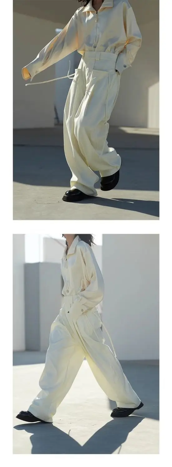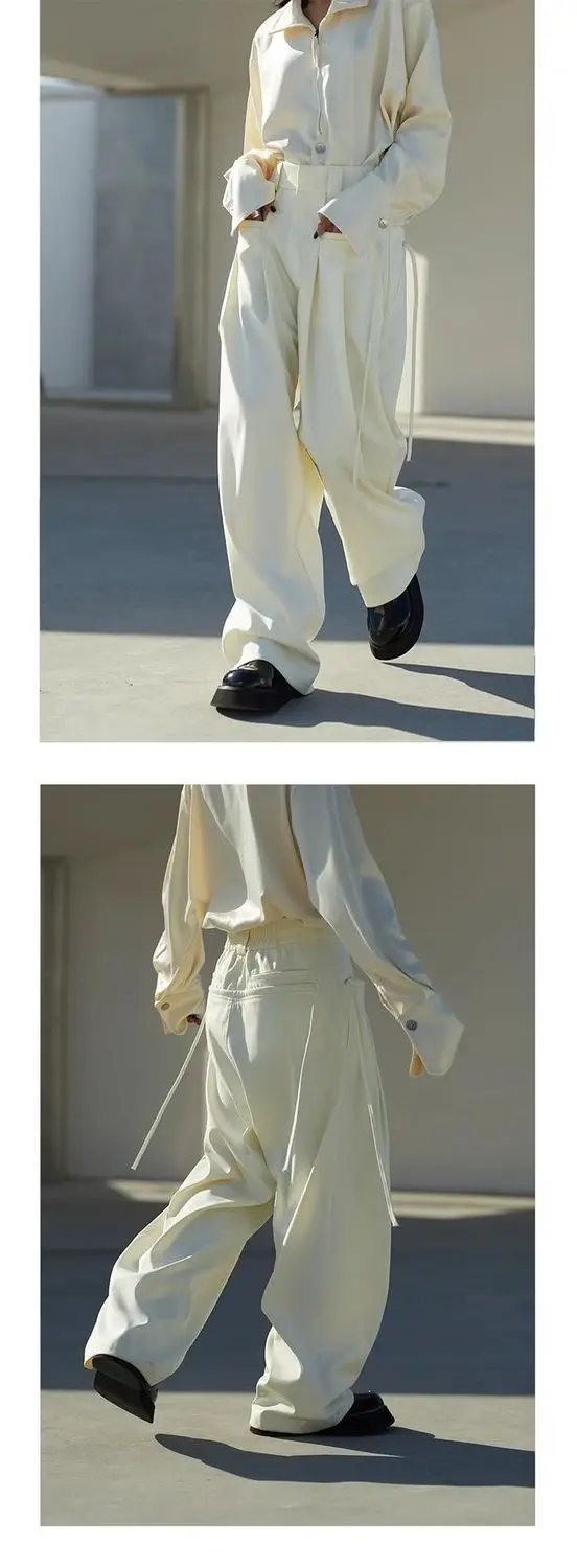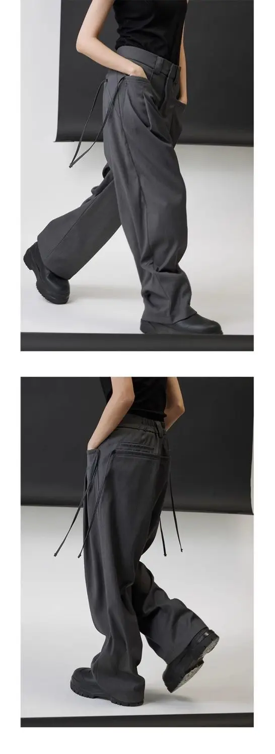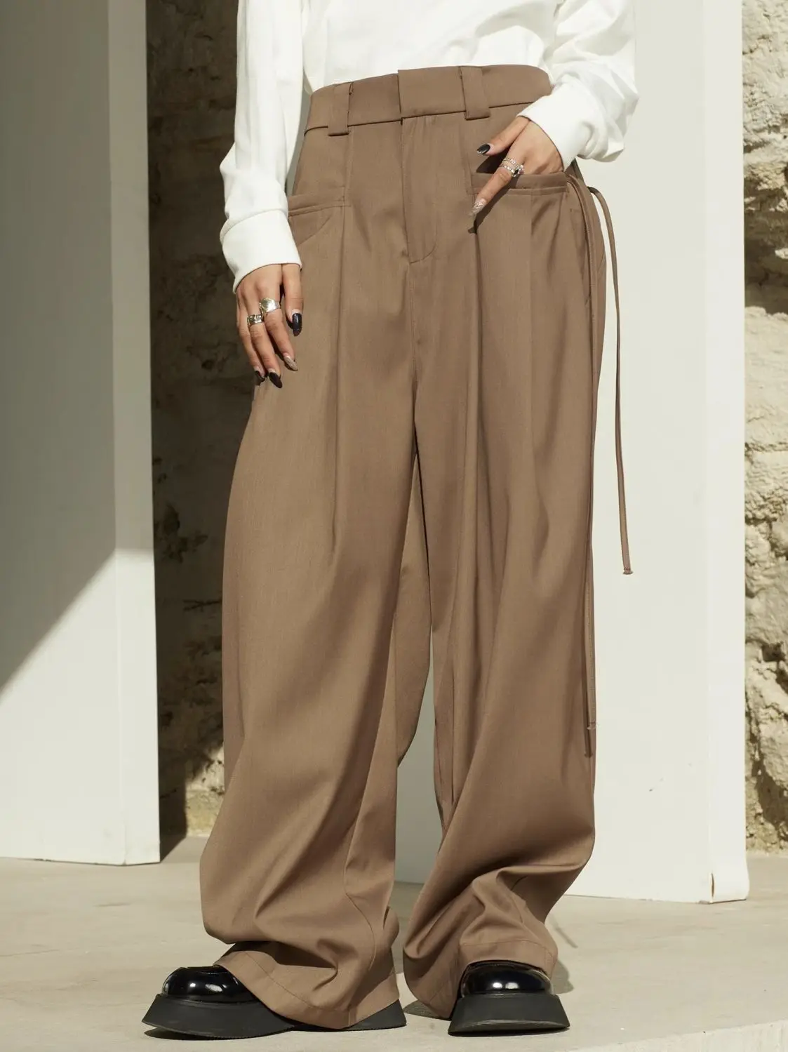 Women’s High-Waist Strap Design Wide-Leg Pants – Casual Loose Slimming Trousers for Spring & Autumn