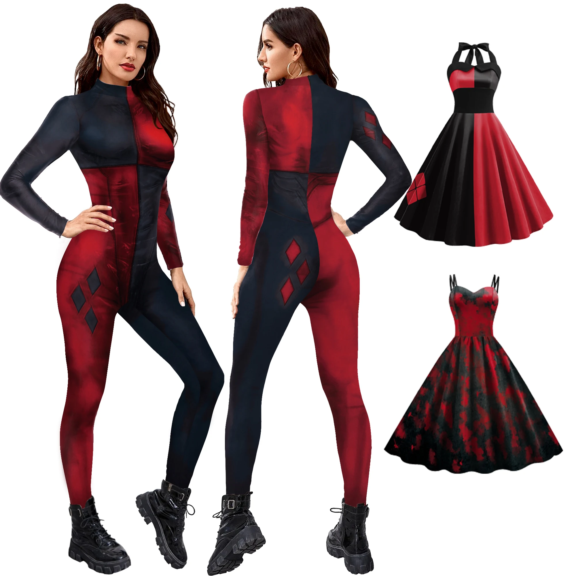 Women’s Movie Role Cosplay Jumpsuit – Halloween & Christmas Printed Bodysuit Costume Party Outfit