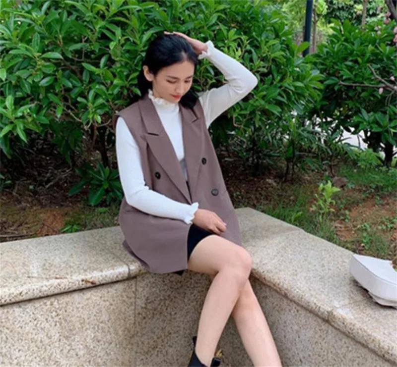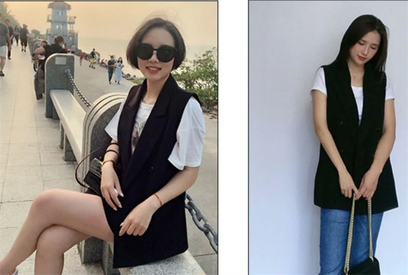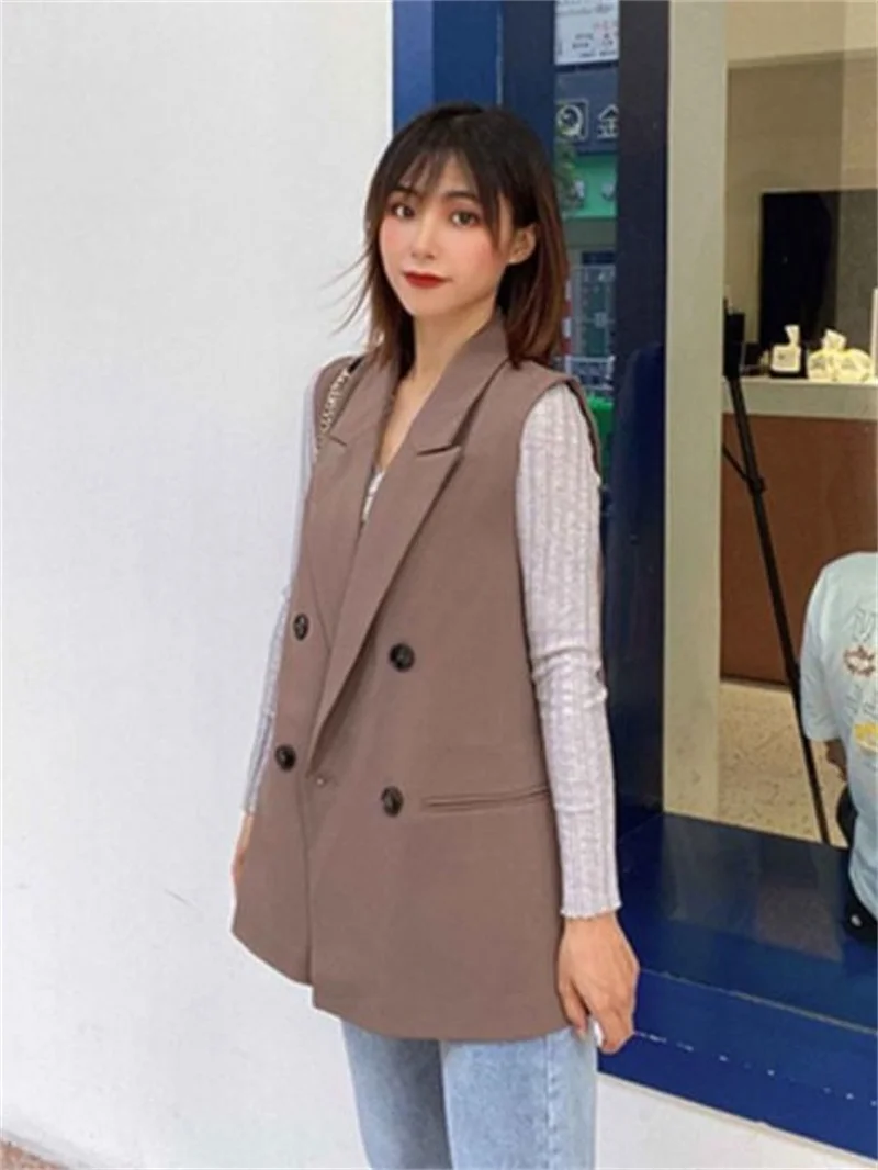 Women’s Sleeveless Black Blazer Vest – Peak Lapel Oversize Suit Coat | 2025 Elegant Korean OL Style Fashion Blazer